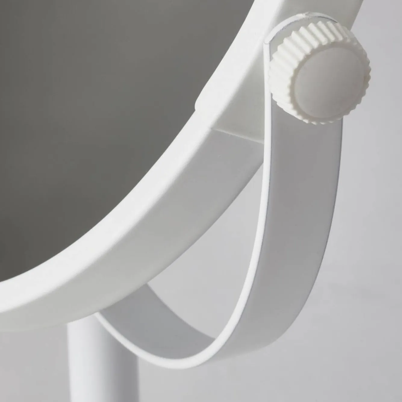Cosmetic mirror / shaving mirror Color White-43 (white)Diameter 19.5 cm Height 33 cmDouble sidedMirror 1: 3 (magnifying) Mirror 1: 1Material: Powder coated steel