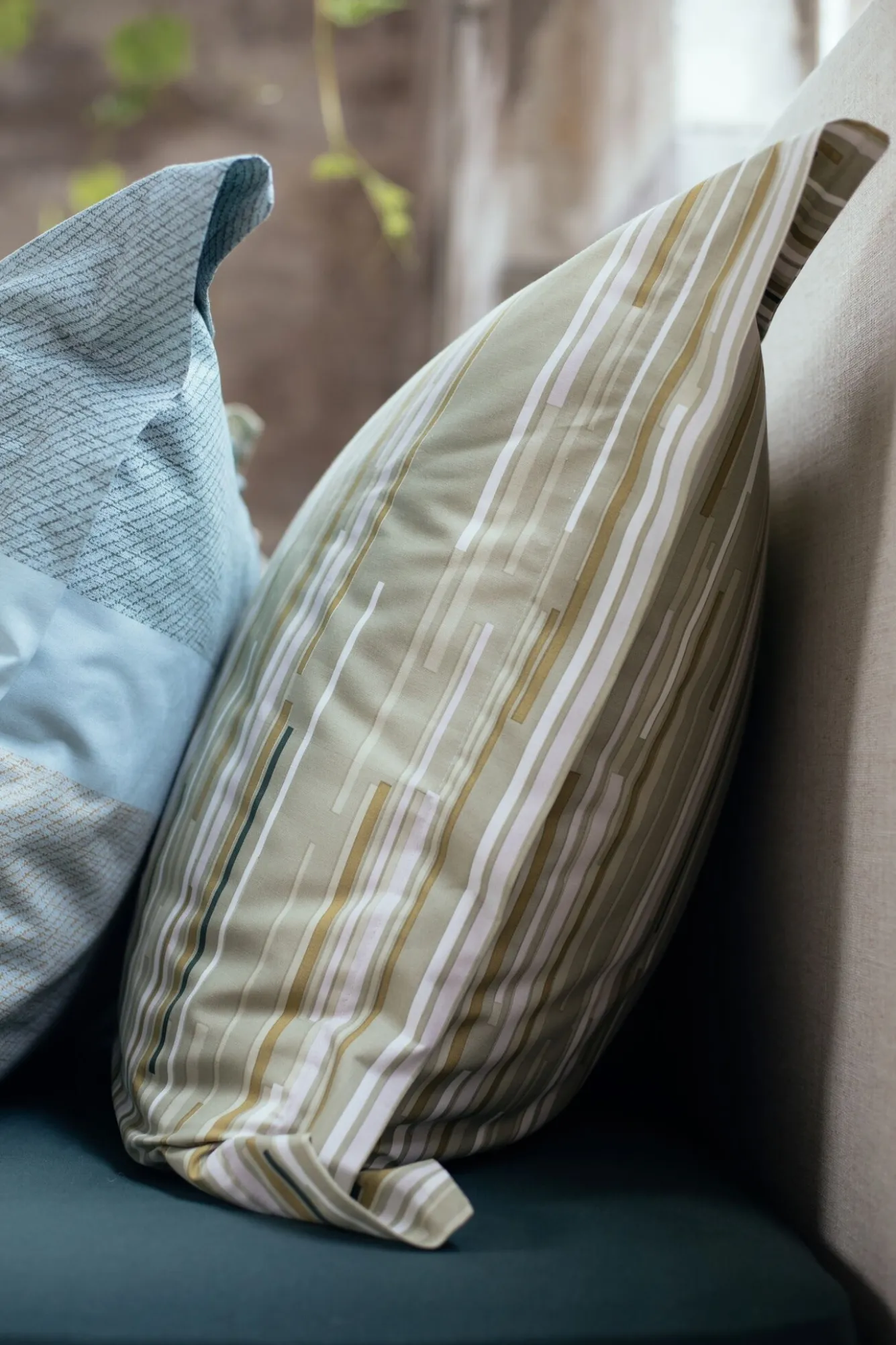 The covers from the Vandyck Cotton Line are made of 100% cotton. The Morning Matcha duvet cover (CLBB23214) has a playful pattern of stripes in a variation of green colors. The print is the same on the front and on the back of the cover. Twin duvet cover Morning Matcha (including 2 pillowcases)Item number CLBB23214Mate Duvet cover: 240×220 cmPillowcase: 60×70 cmThe pillowcase has a luxurious Oxford decorative border all around.Colour Smoke Green-814 (green)Quality 100% cottonTuck-in strip The duvet cover has a tuck-in strip of approximately 35 cm (large bottle neck) Washing instructions Machine washable at 40 degrees (dark colors) or 60 degrees (light colors)Dry at low temperatureHot ironing