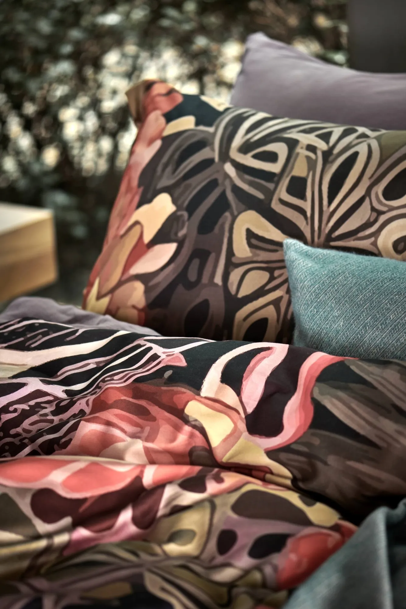Vandyck 2 person duvet cover WildscapeThe 2-person duvet cover Wildscape is reminiscent of an abstract painting of flowers. The different deep shades such as purple and green enhance the brightness of the pink, red and orange colours but also ensure that the design is not too flashy. The plain colour on the back is dark purple. The duvet cover is made of 100% satin cotton.The double Vandyck duvet cover Wildscape of 200 x 220 cm is suitable for a small double and comes with 2 pillowcases of 60 x 70 cm. The pillowcases have a luxurious Oxford decorative border. For easy making of your bed, the duvet cover has a spacious bottle neck as a tuck-in strip.Satin cottonThe Satin Printed duvet cover is made of a supple satin cotton. This luxurious variant of cotton is wonderful to sleep under. In addition, satin cotton is often almost iron-free. The weaving technique creates a light sheen and the design and colours come out extra beautifully. This duvet cover has a thread count of 200 TC.Washing instructions The Wildscape duvet cover is machine washable at 40 degrees. It can be tumble dried at a low temperature and ironed at a high temperature. Don’t feel like ironing? Then it’s better to hang the cover out neatly.