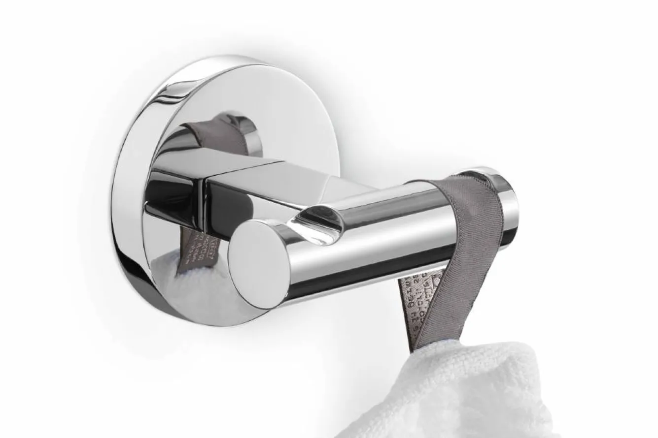 Can be found in bathrooms for many years: stainless steel bathroom and toilet accessories with the traditional shine. The items in this series have round shapes with a smooth finish.Product informationTowel hook tandemArticle no. 40063DimensionsWidth: 6.8cmHeight: 6 cmDepth: 6 cmFixing points: 1 (Ø 6cm)Material informationPolished stainless steel (gloss)ConfirmationScrews (included)Gluing (also order glue item no. 30003)CleaningWe recommend using only water with a little washing-up liquid to clean the Zack items.