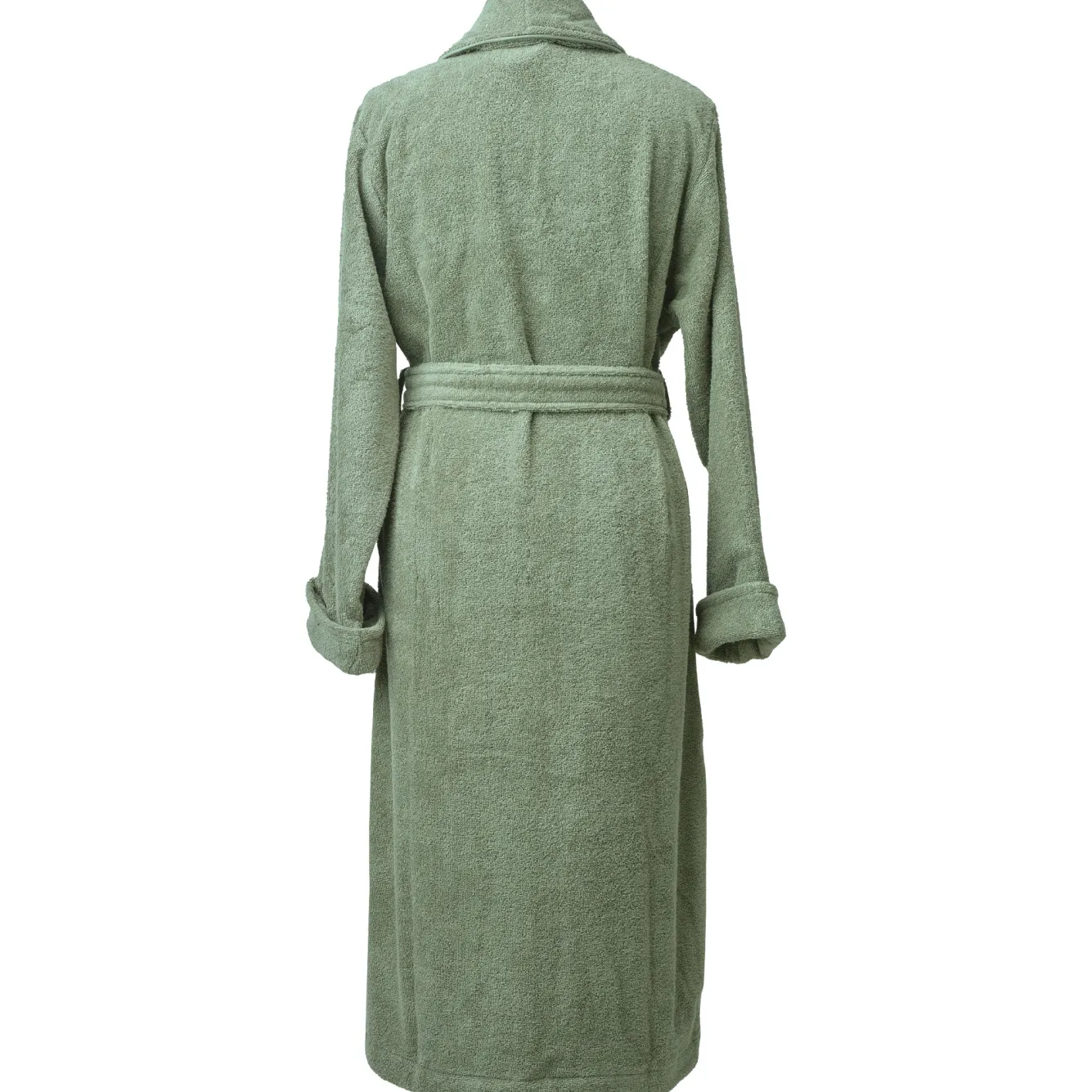 Wonderfully comfortable London bathrobe from Aquanova, made of 100% Egyptian cotton. The soft dressing gown has a nice ‘Regular Fit’ fit. With deep side pockets, a belt and beautiful shawl collar with satin trim, you can spend hours in this bathrobe!London bathrobeItem number: LONBG-293ColourThyme-293 (green)Material informationInside and outside: 100% Egyptian cotton420 gr/m²Washing instructionsThe bathrobe is machine washable at 40 degreesDry on a low settingFit This bathrobe has a ‘Regular Fit’, a wide wrap and is not fitted. Are you hesitating between two sizes? Then choose the largest size.Which size?SmallMediumLargeXLargeLength115 cm115 cm115 cm115 cmWaist (incl wrap)134 cm138 cm142 cm148 cmSleeve length63 cm64 cm65 cm66 cm