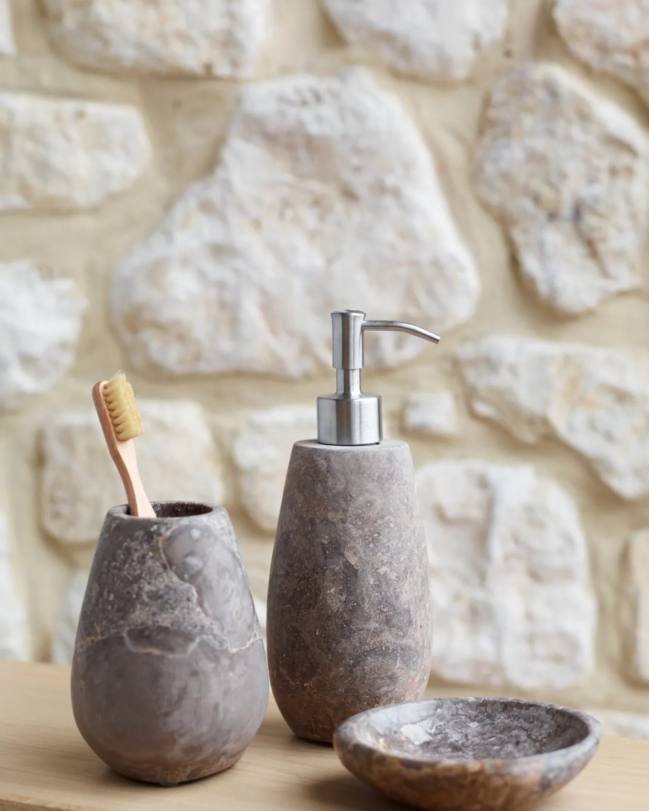 This extensive series of bathroom accessories is made of natural stone in a gray / beige color. This creates a calm, neutral and natural atmosphere in your bathroom or toilet. Nice to combine with wood or other natural materials. Cup/toothbrush holderItem number: CONTUM-15ColourGreige-15 (gray/beige)DimensionsWidth: 9 cmDepth: 8.5 cmHeight: 12 cmMaterial informationThe Conor accessories are made of natural stone.Please note: this is a natural product. The color and pattern of this product may vary from delivery to delivery depending on the quarry and stone structure.MaintenanceDo you want to clean the product? Then use soapy water and dishwashing liquid.