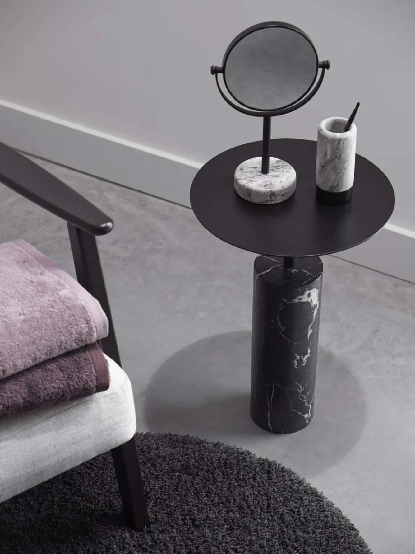 The toothbrush holder from the Nero series from Aquanova is handmade and has a luxurious look. This is due to the natural stone with chic marbling. The bottom is made of steel with a black powder coating. Nero cup / toothbrush holderItem number: NERTUM-195ColourAlba-195 (gray)DimensionsDiameter: 6cmHeight: 13.5 cmMaterialNatural stoneBlack powder-coated steel (bottom of cup)The color and pattern of the items may differ per delivery depending on the quarry and stone structure.MaintenanceDo you want to clean the product? Then use soapy water and dishwashing liquid.