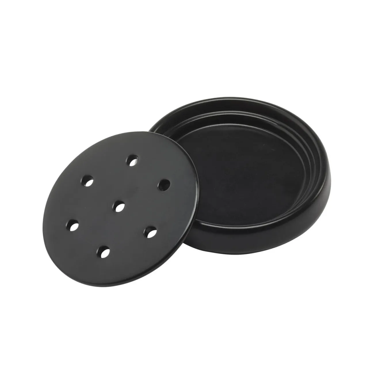 Bathroom accessories OPACOSoap dishColor: Black-09 (black)Diameter: 12 cm Height: 3 cmMaterial:Ceramic (ceramic) with rubber finish Steel color Brass-33 (brass)