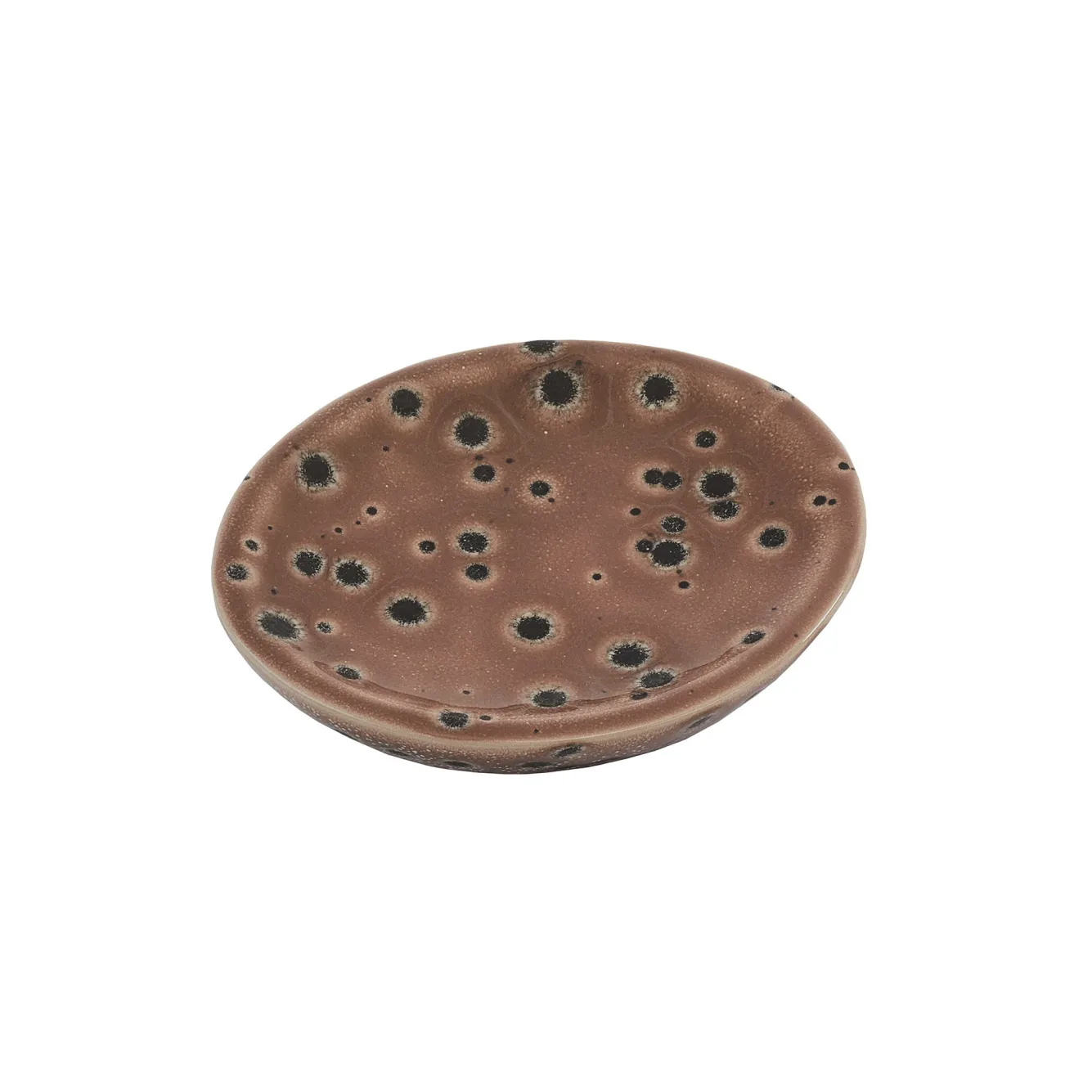 Stylish, authentic and slightly different. The handmade Ugo bathroom accessories from Aquanova are characterized by oval shapes and contemporary prints. Nice to combine with many colors! Ugo soap dish / soap dish Item number: UGOSDI-155ColourCamel-155 (brown)Dimensions Length: 12 cmWidth: 10 cmHeight: 3 cmMaterial informationThe Ugo series is handmade from glazed stoneware. Stoneware is a form of ceramic made from stoneware clay. The use of natural materials creates beautiful color nuances and typical features, making the appearance of each item unique.MaintenanceDo you want to clean the product? Then use soapy water and dishwashing liquid.