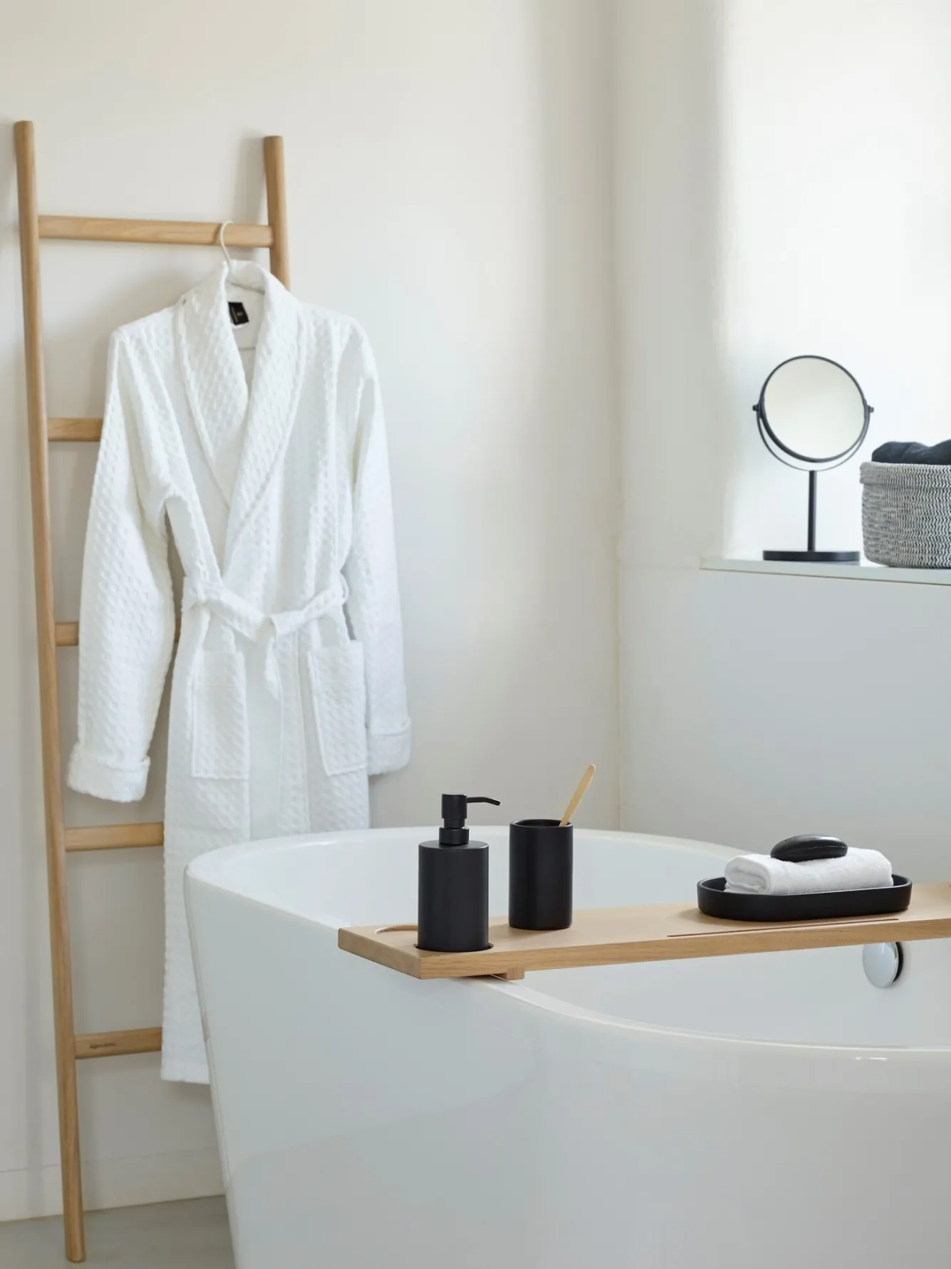 The FORTE accessories from Aquanova have a slim design, making them a great fit for any bathroom or toilet. The series is completely in color, made of stoneware and provided with a galvanized coating.Forte soap dispenser / soap pumpItem number: FORDIS-09ColourBlack-09 (black)DimensionsDiameter: 7cmHeight: 16 cmContents: 330 mlMaterial information* This product is made of stoneware and has a galvanized coating on the body and pump head* The bottom has a non-slip bottomMaintenanceDo you want to clean the product? Then use warm water with a little soap or dishwashing liquid. We also recommend using PH neutral soap in the soap dispenser.