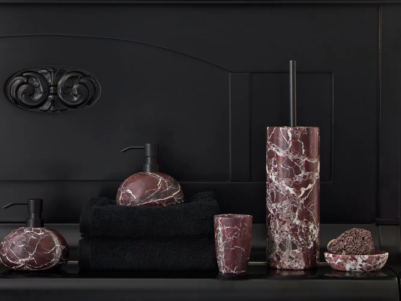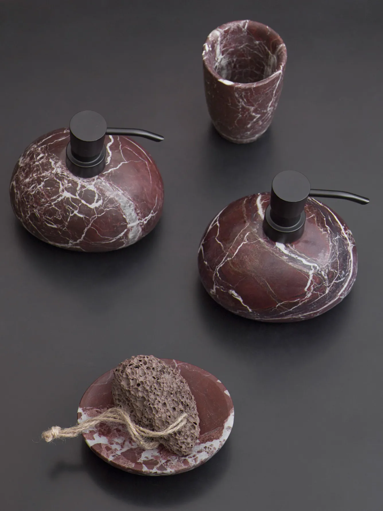 Unique, luxurious and stylish… this beautiful series of bathroom accessories from Aquanova is made of natural stone in a red-brown color with black details for a cool look. Depending on the quarry, each item is unique. Mundo soap dispenser / soap pumpItem number: MUNDIS-559ColourRosso-559 (red / dark red / wine red)DimensionsWidth: 13 cmLength: 10 cmHeight: 13 cmContents: 150 mlMaterial informationNatural stonePump head made of black powder-coated steelThe color and pattern of the items may vary per delivery depending on the quarry.MaintenanceDo you want to clean the product? Then use soapy water and dishwashing liquid. We also recommend using PH-neutral hand soap in the soap dispenser.