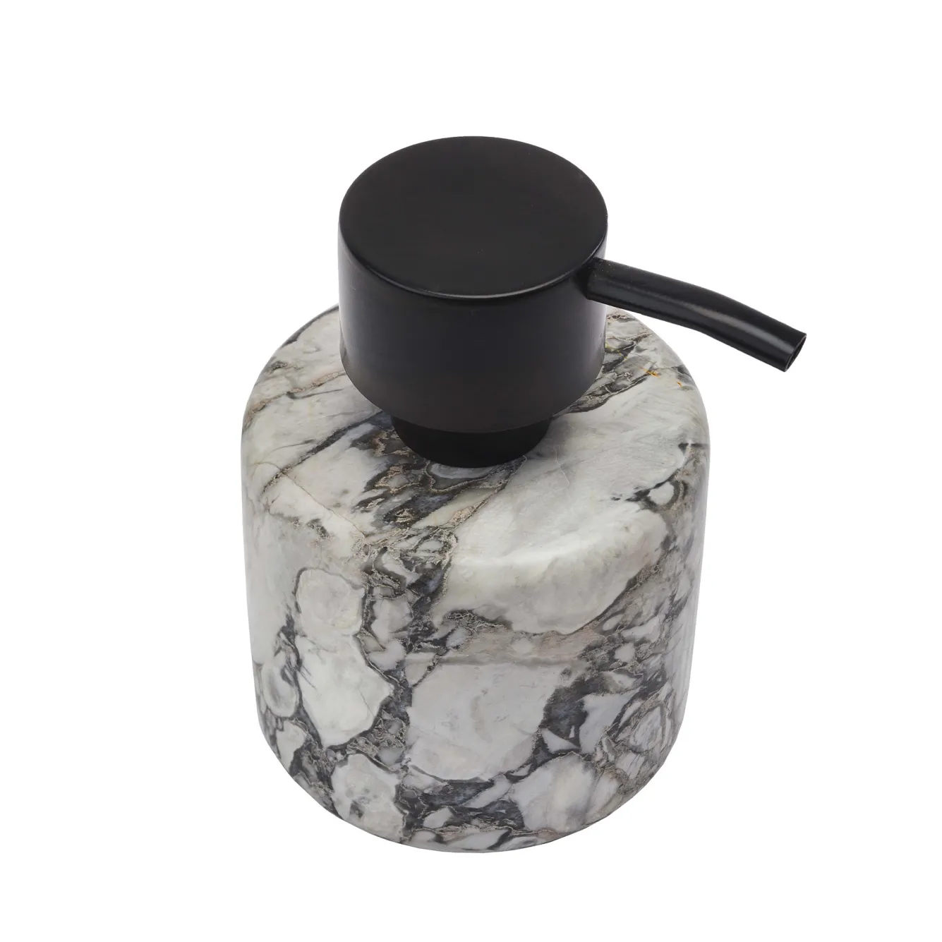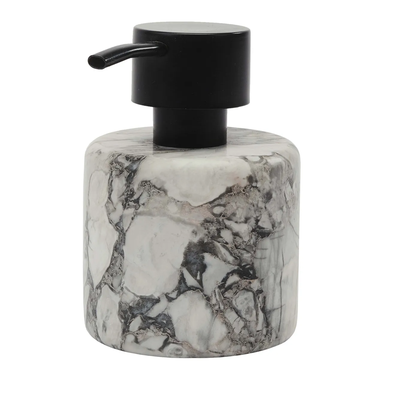 The soap dispenser from the Nero series from Aquanova is handmade and has a luxurious appearance. This is due to the natural stone with chic marbling. The pump head is made of steel with a black powder coating. Nero soap dispenser / soap pump (medium)Item number: NERDIM-195ColourAlba-195 (gray)DimensionsDiameter: 9cmHeight: 13 cmContents: 220 mlMaterialNatural stoneBlack powder coated steel (pump head)The color and pattern of the items may differ per delivery depending on the quarry and stone structure.MaintenanceDo you want to clean the product? Then use soapy water and dishwashing liquid. We also recommend using PH-neutral hand soap in the soap dispenser.