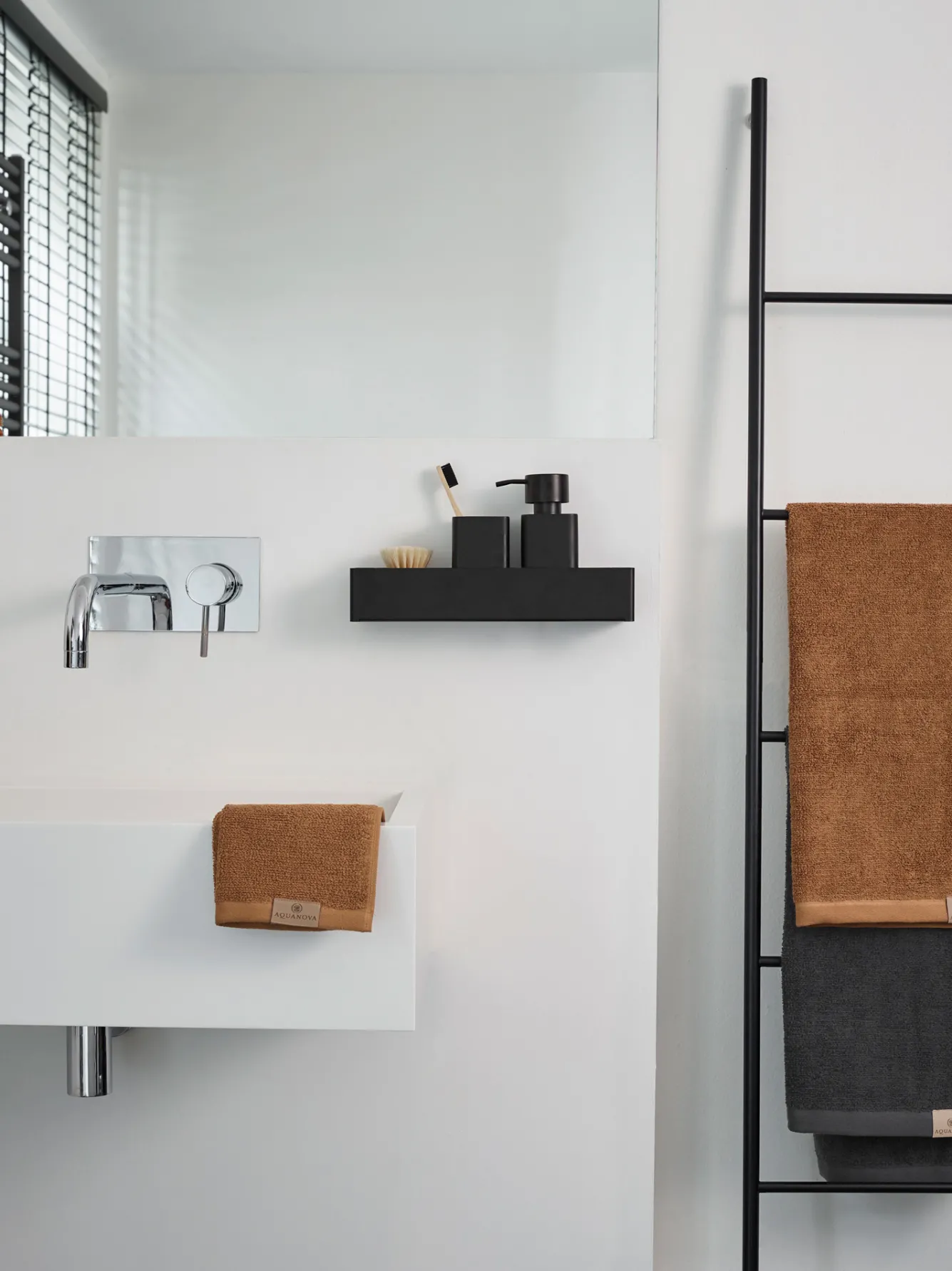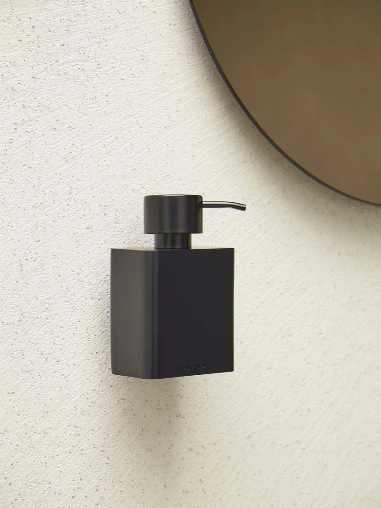 Handy when you have little space near your fountain or sink: a wall-mounted soap dispenser. This soap pump from the Khana series from Aquanova is made of polystone with a stainless steel pump head. The matte black coating and sleek shapes give the soap pump a cool look.Khana soap dispenser wallItem number: KHADIW-09ColourBlack-09DimensionsHeight: 14.5 cmWidth: 9 cmDepth: 6 cmContents: 270 mlMaterial informationThe base of this product is made of polystone/polyresin and the pump is made of stainless steel, both finished with a matte coating. The inside is made of plastic.MaintenanceDo you want to clean the product? Then use soapy water and dishwashing liquid. We also recommend using PH neutral hand soap in the soap dispenser.