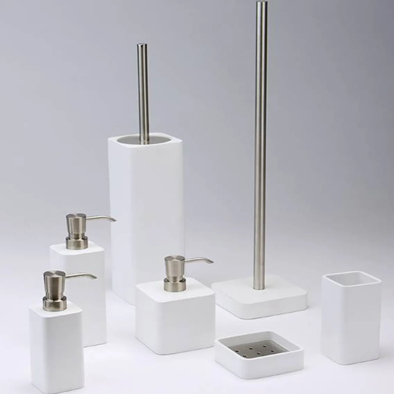 Bathroom accessories ONAToilet brush holderColor White-43 (white)Size: 9.5 x 9.5 cm Height of the holder: 25.3 cm Height of the stem: 39 cmMaterial: Polyresin (synthetic resin)