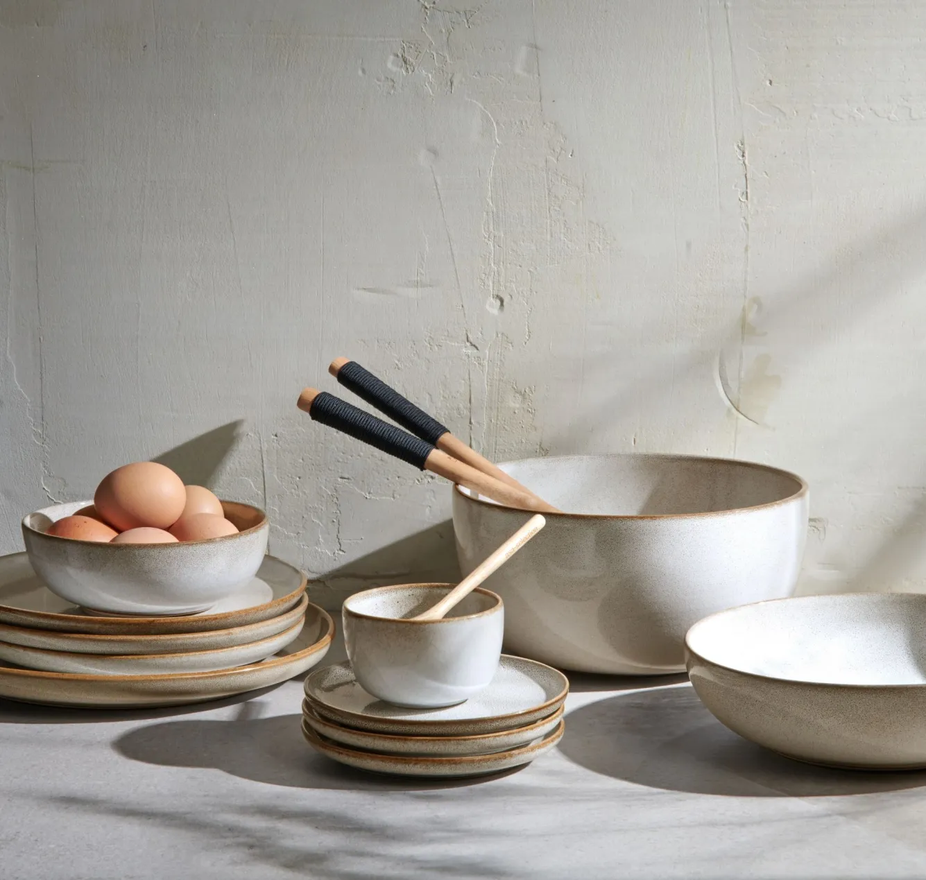 Dinner plate from the Saisons series from ASA. A stoneware tableware series that is handmade in Portugal by a small family business. The different Saisons colors are a representation of the Portuguese coast; sea, sky and beach. The sand is not always fine and the sea and sky are not always blue. This free character is reflected in the effect glaze of the Saisons tableware. The series is very extensive with items in variousshapes and sizes. The different colors create even more possibilities for combinations. Flat plate / dinner plateItem number: 27161ColourSand-107 (beige)DimensionsDiameter: 26.5 cmHeight: 2.2 cmThe dimensions of the Saisons tableware may vary slightly due to the organic shapes.Material informationThe Saisons tableware is made of speckled stoneware and finished with a glossy reactive glaze.Suitable for dishwasher, microwave and oven.Maintenance adviceEven though the tableware is dishwasher safe, dishwasher detergents can lead to a dull appearance of the items. To prevent this, we recommend washing the dishes by hand.