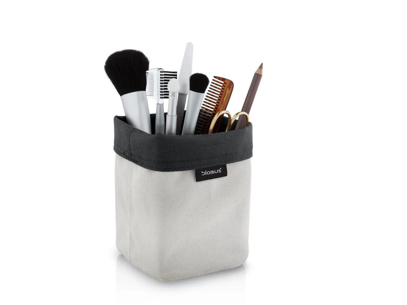 Bathroom accessories ARAStorage basketItem no. 68893Tetron 65% Polyester and 35% ViscoseColor AnthraciteHeight: 12 cmLength 9 cmWidth 9 cmCan be used on both sides. (inside has a light sand color)