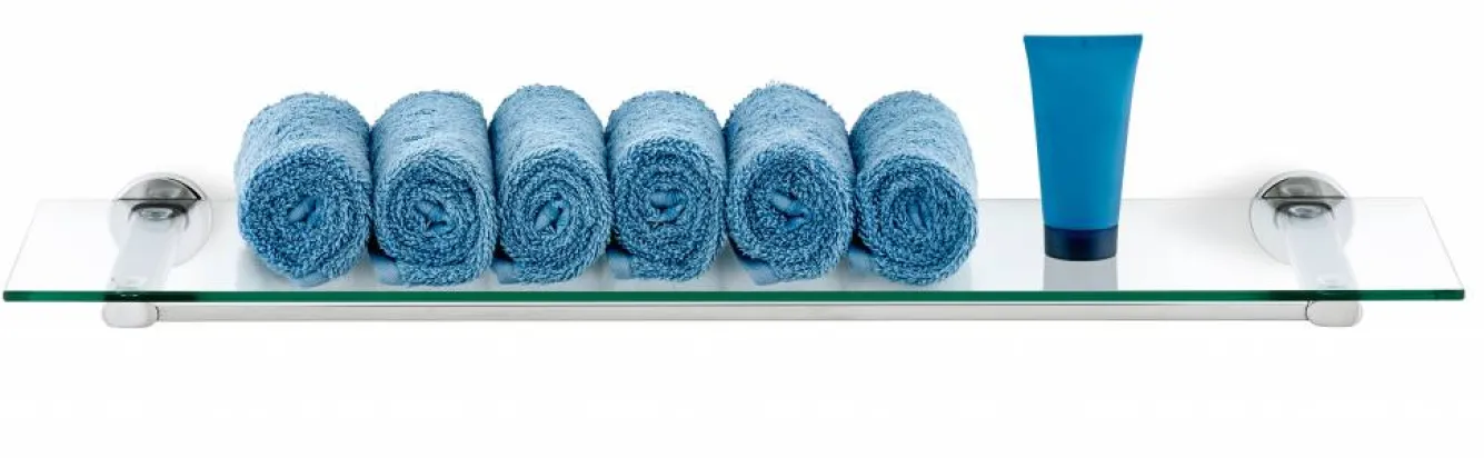 Bathroom accessories AREOShelfItem no. 68933Polished stainless steel (mat)clear glassWidth: 76 cmDepth: 24 cmNumber of fixing points: 2ConfirmationScrews (included)Adhesives (also order mounting adhesive item no. 68809)