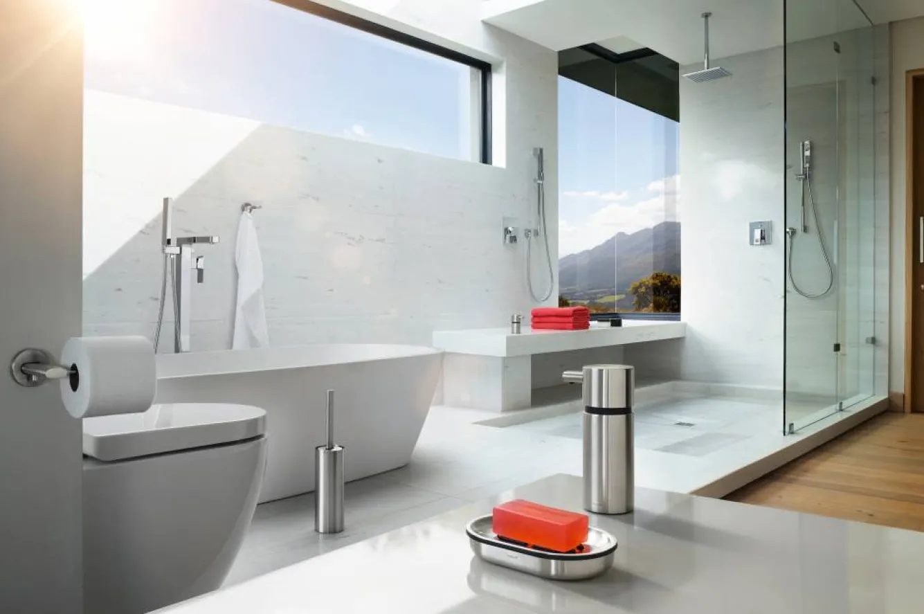 Bathroom accessories AREODouble toilet roll holderItem no. 68807Brushed stainless steel (mat)Plastic (black)Diameter: 5.5 cmWidth: 28.5 cmConfirmationScrews (included)Adhesives (also order mounting adhesive item no. 68809)