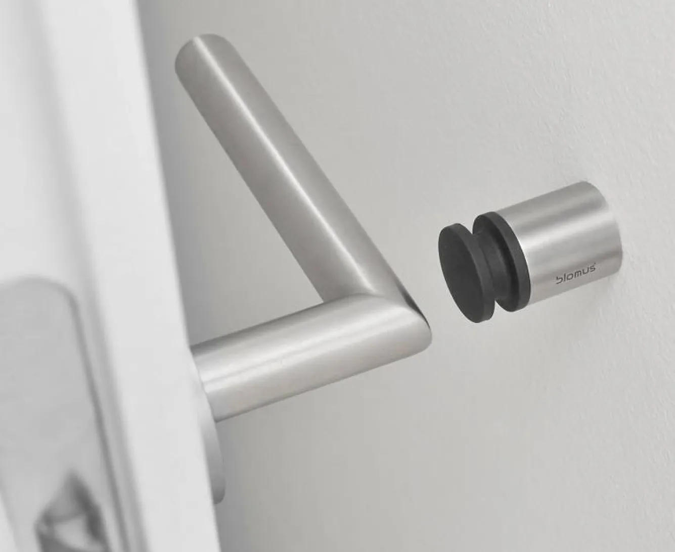 This Blomus door stop is easy to use because it can be attached to the wall. The soft silicone rubber stops the door gently. Made of brushed steel.Door stopper EntraItem number: 66711ColourBurned Metal (metallic finish)Material informationBrushed stainless steel (matt)Soft plastic tip (black)DimensionsLength: 4cmDiameter: 2.5cmConfirmationScrews (included)