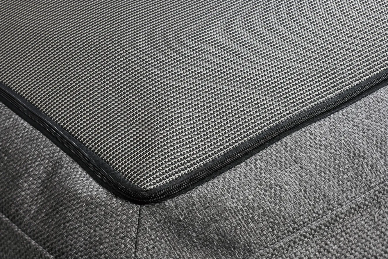 Discover the endless possibilities of GROW outdoor furniture! You can use each module as a separate lounge, but it is also possible to link the modules together. Due to the many sizes, the GROW outdoor furniture can be placed on any terrace or balcony. Choose your favorite setup and easily create a lounge sofa of your choice!Tip: Are you unsure about the color? First order a small pillow in the different colors, these can easily be returned.Product informationGROW module M5 – PoufArticle number 62074Color CoalMatching protective cover (62084) and bottom plate (62111) are available separatelyDimensionsWidth: 75 cmLength: 75 cmHeight: 38 cmMaterial informationAll GROW lounge furniture and cushions are made of Olefin (370gr/m²). A soft, light fabric of high quality that feels great. Olefin is water resistant, easy to maintain, has a high UV resistance and is Oekotex-Standard 100 certified. This textile contains no harmful substances and is produced in an environmentally friendly way.The filling on the inside is made of top quality foam for a wonderful sitting and lying comfort.The water-resistant bottom is suitable for direct installation on a terrace or balcony.Do you want to avoid long-term contact with rainwater and moisture? Via the zipper in the bottom it is possible to attach a bottom plate (article no. 62111) that provides extra stability and which is equipped with furniture legs with a height of 2 cm. The bottom plates are easy to connect to each other with connectors (article no. 62106) with which you can put together a complete lounge sofa.Shipping informationDue to a special vacuum technique, all GROW elements are reduced in volume by up to 70%, so that they can be packed in regular shipping boxes. This means that it is not necessary to incur additional costs for delivery and installation.Keep in mind that the elements really start to ‘grow’ as soon as you open the vacuum packaging. Returns are therefore not possible when the vacuum package has been opened.MaintenanceDo you want to clean the outside of the pillow? Then use a damp cloth without detergent and let the textile dry in the air (water and heat max. 38°C).A matching protective cover is available for this product (item no. 62084)For a longer life of the product, it is recommended to impregnate the textile annually with a water- and dirt-repellent spray. Cleaning spray (article no. 31058) and impregnating spray (article no. 31059) are available.