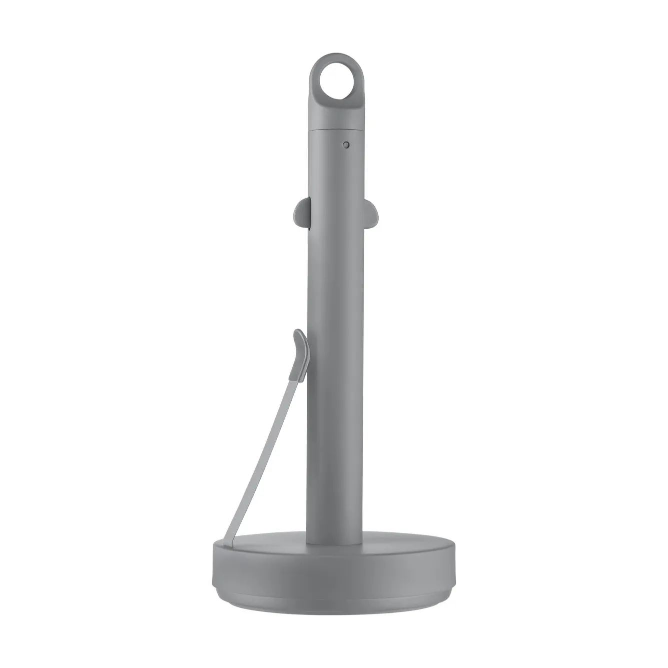 This kitchen paper holder is practical for any kitchen. You only need one hand to grab a paper towel. This is due to the handy clamp and the sturdiness of the holder, which is created by the reinforced bottom with anti-slip. Thanks to the cool solid color, this kitchen roll holder is also pleasant to the eye. Kitchen paper holder / kitchen roll stand LoopItem number: 64366ColourSharkskinDimensionsDiameter: 15 cmHeight: 34 cmMaterial information Made of powder-coated steelRubber bottom for better gripCleaningDo you want to clean the product? Then use soapy water and dishwashing liquid.