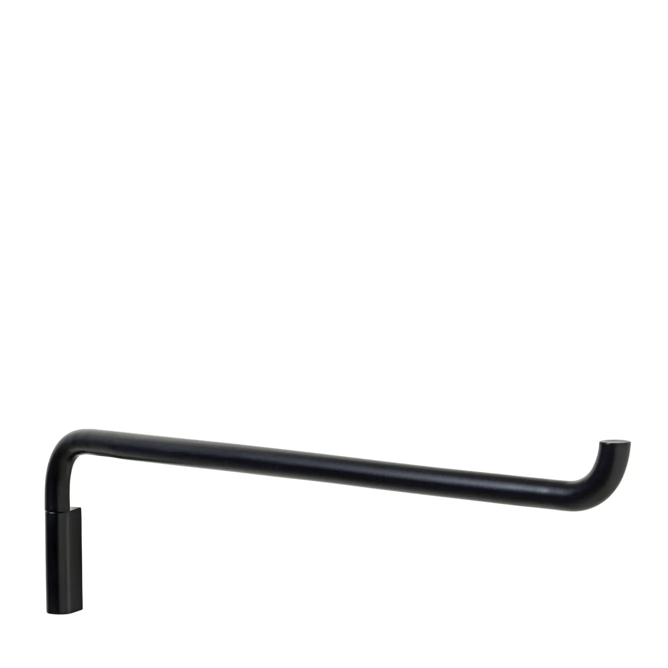 Sleek, minimalist and modern! The look of the MODO bathroom accessories is created by the titanium coating, fashionable shapes and elegant colors. Nice to combine with natural shades or with a nice accent color. Towel rail Modo (swiveling)Item number: 69084ColourBlackDimensionsLength: 46cmHeight: 11.5 cmWidth: 1.5 cmMaterial Made of titanium coated steel in matte black color.Mounting with screws (included)MaintenanceDo you want to clean the product? Then use soapy water and dishwashing liquid.