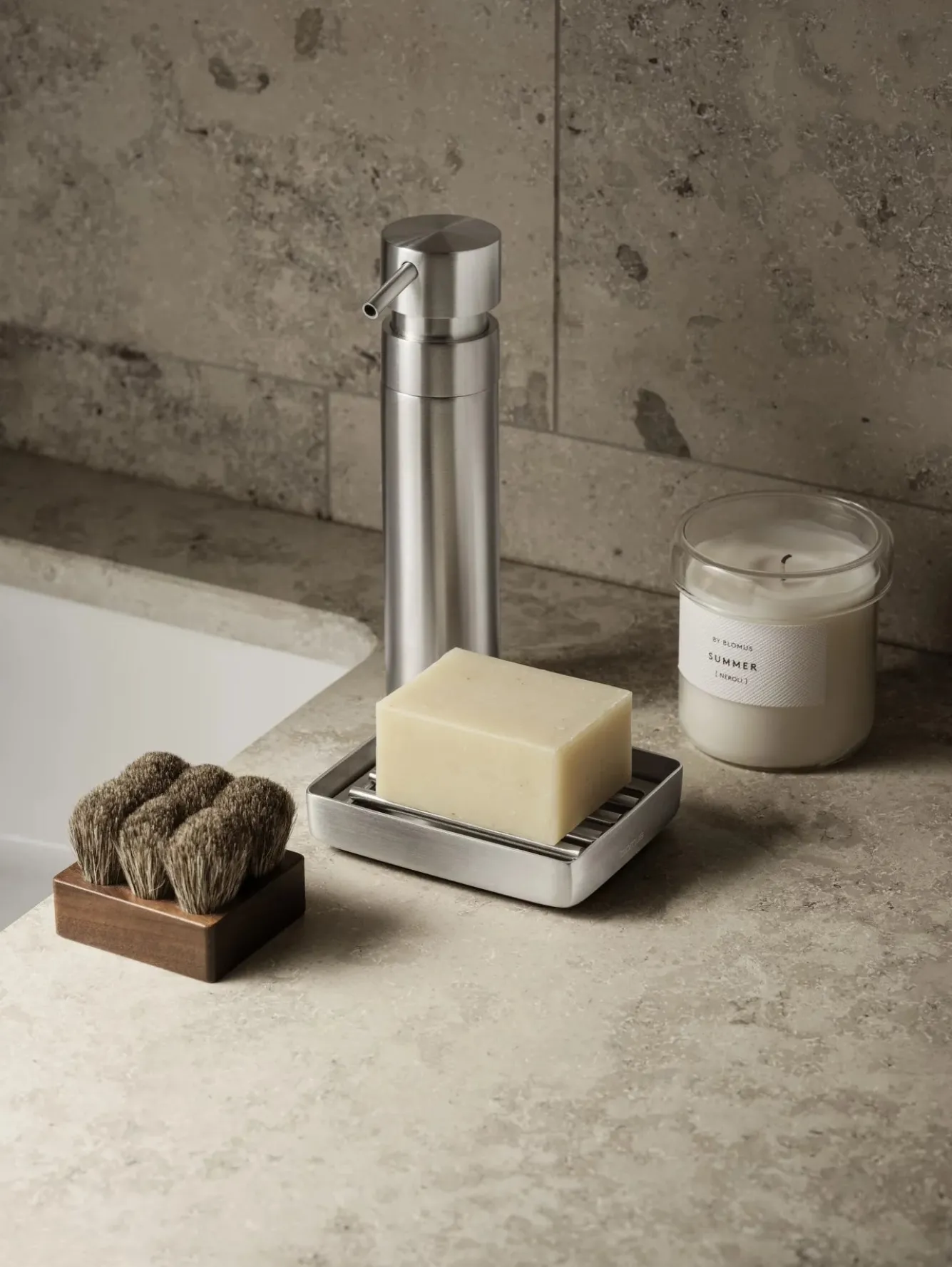 Bathroom accessories NEXIOSoap dispenserItem no. 68615Outside: Brushed stainless steel (mat)Inside: PlasticDiameter: 4 cmHeight: 17 cmContent: 100 mlFill the soap dispenser up to a maximum of 2 cm below the screw thread.