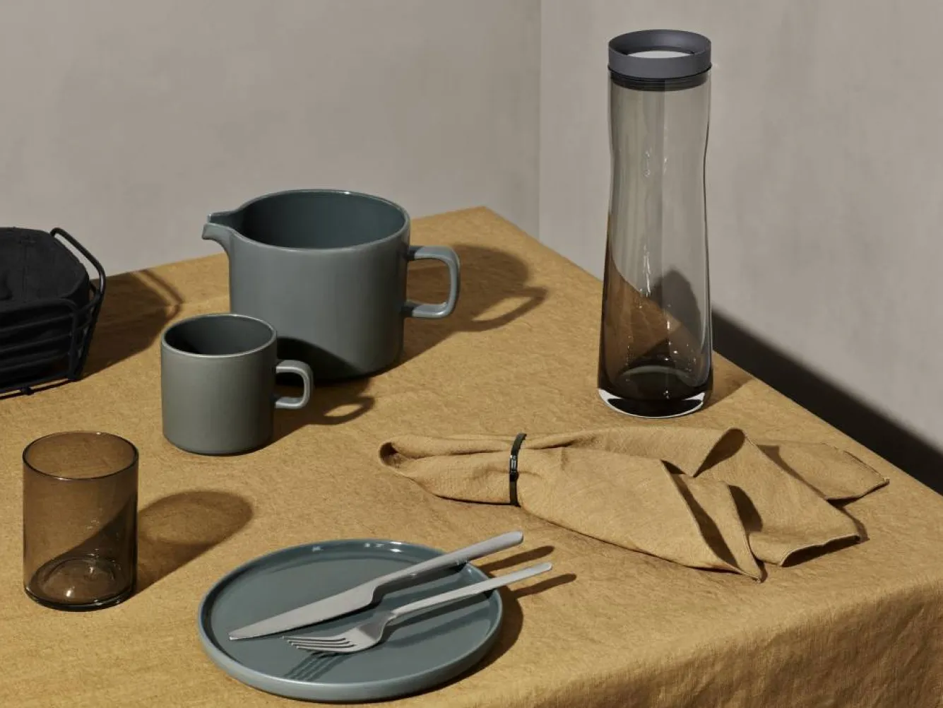 Water jugArticle no. 63807Material* Smoked glass* Well-closing silicone lid (Magnetic color, dark gray) with polished stainless steel, self-closing pouring pieceDiameter: 9cmHeight: 29.5 cmContents: 1 litre