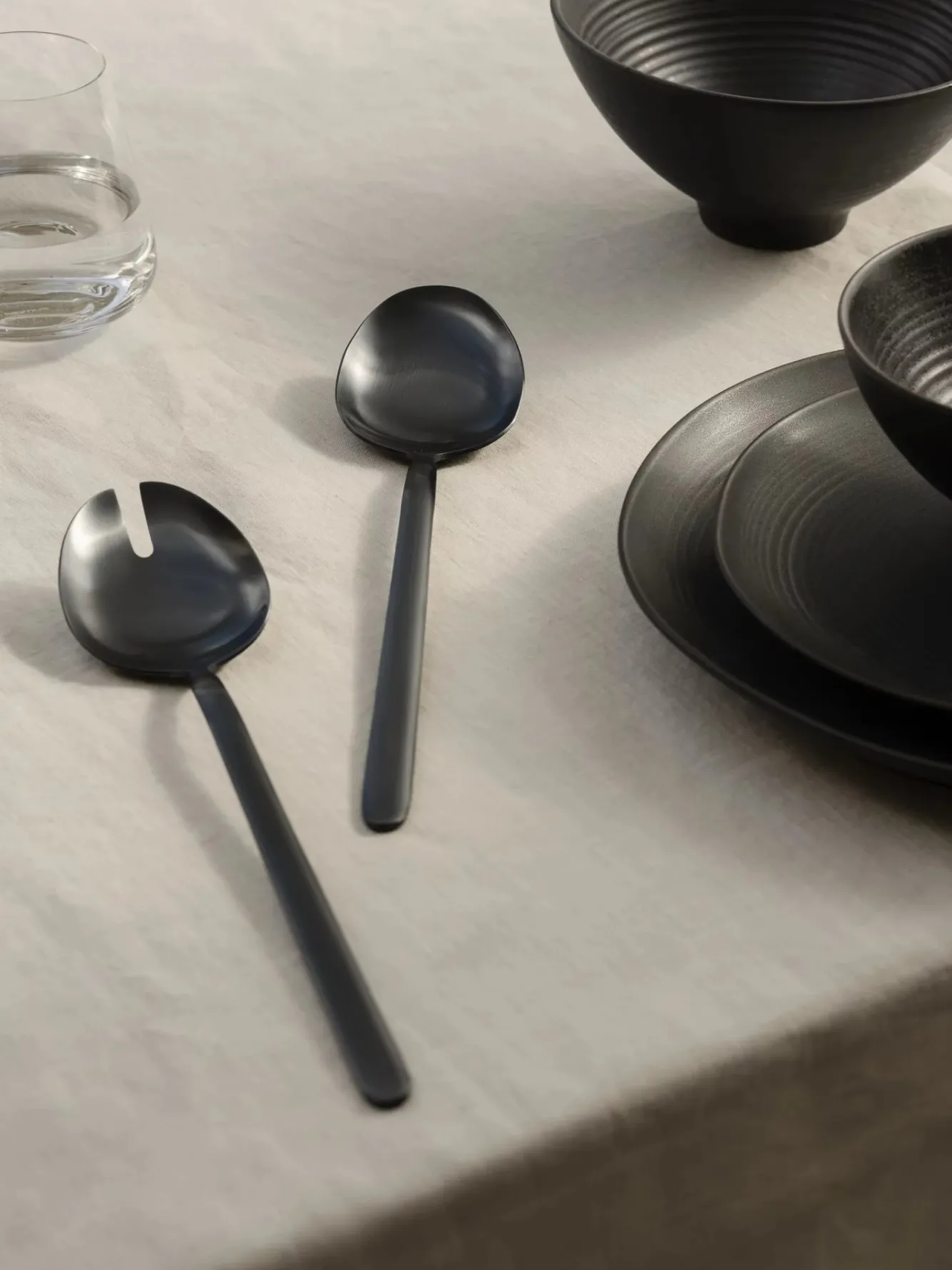 This cutlery from the Stella series from Blomus is made of stainless steel with a PVD coating. This layer not only ensures the color of the cutlery, but also makes the cutlery more resistant to scratches. The refined round finish and black color immediately provide a modern table setting.Stella salad cutlery (spoon and fork)Item number: 64473Color: BlackDimensionsSalad spoon length: 28 cmWidth salad spoon: 6 cmSalad fork length: 28 cmWidth salad fork: 6 cmMaterialThe cutlery is made of stainless steel with a colored PVD coating.MaintenanceThe black Stella cutlery is dishwasher safe, but should be removed immediately after the cleaning program and dried carefully. Over time, the coating may discolour due to the use of the dishwasher / dishwasher detergents. Washing by hand is therefore recommended to extend the lifespan.