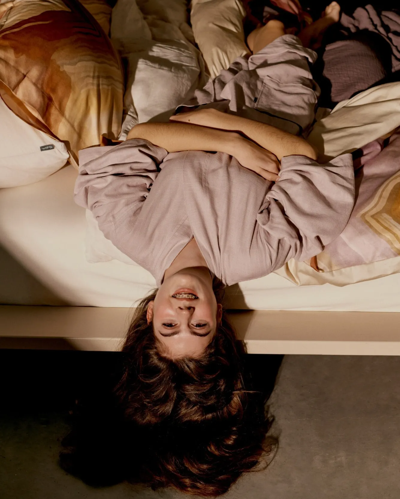 The Mimosa duvet cover (SASR24104) has a light, beige background with a zigzag design in orange and purple tones. The wavy, colored lines are reminiscent of abstract paint stripes. The underside is uni colored. The cover is made of 100% satin cotton.1-person duvet cover Mimosa (including 1 pillowcase)Item number SASR24104Mate Duvet cover: 140×220 cmPillowcase: 60×70 cmThe pillowcase has a luxurious Oxford decorative border all aroundColour Multicolor-000PrintTop: MimosaUnderside: Uni coloredQuality 100% satin cotton Tuck-in strip The duvet cover has a tuck-in strip of approximately 35 cm (large bottle neck) Washing instructions Machine washable at 40 degrees (dark colors) or 60 degrees (light colors)Dry at low temperatureHot ironing