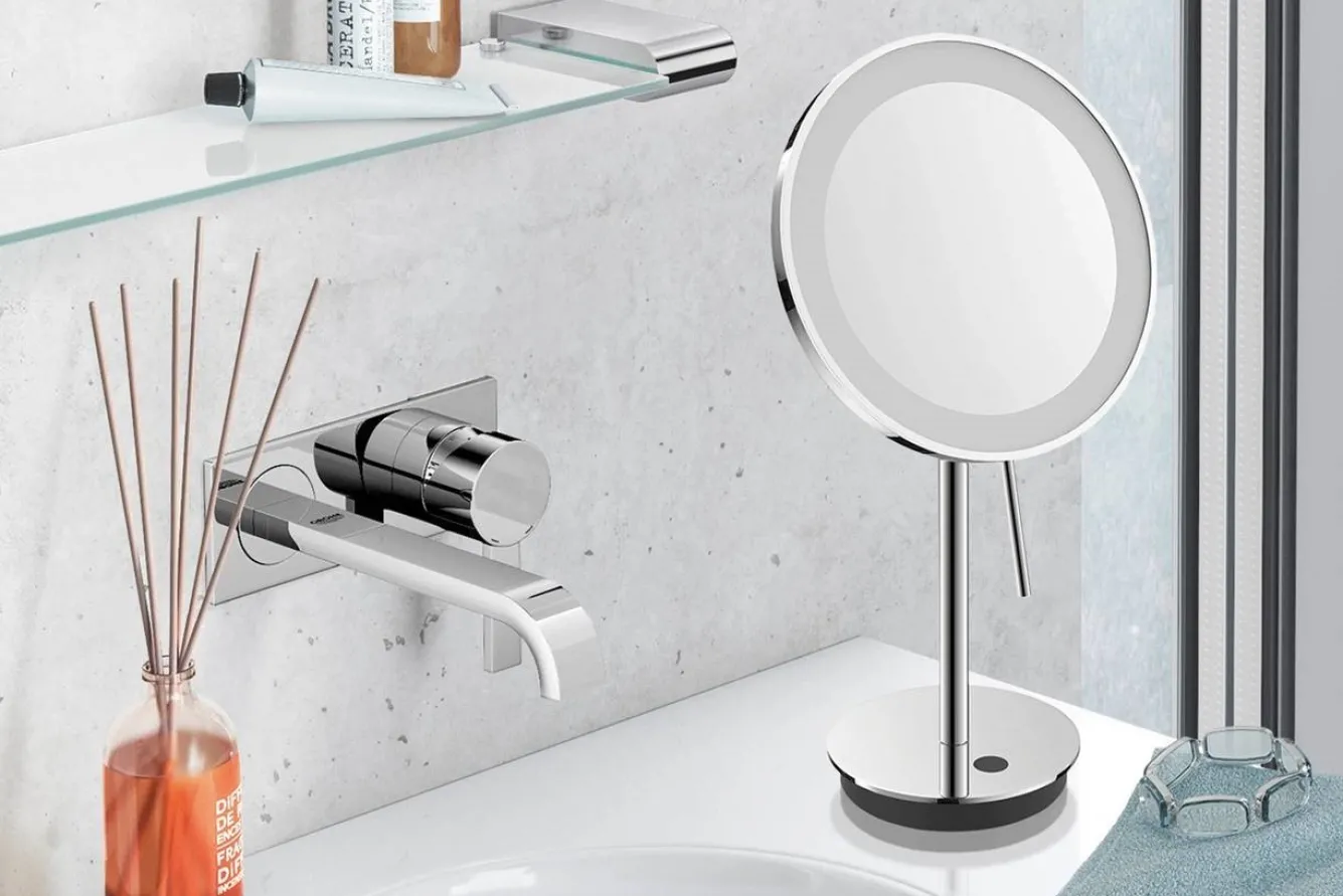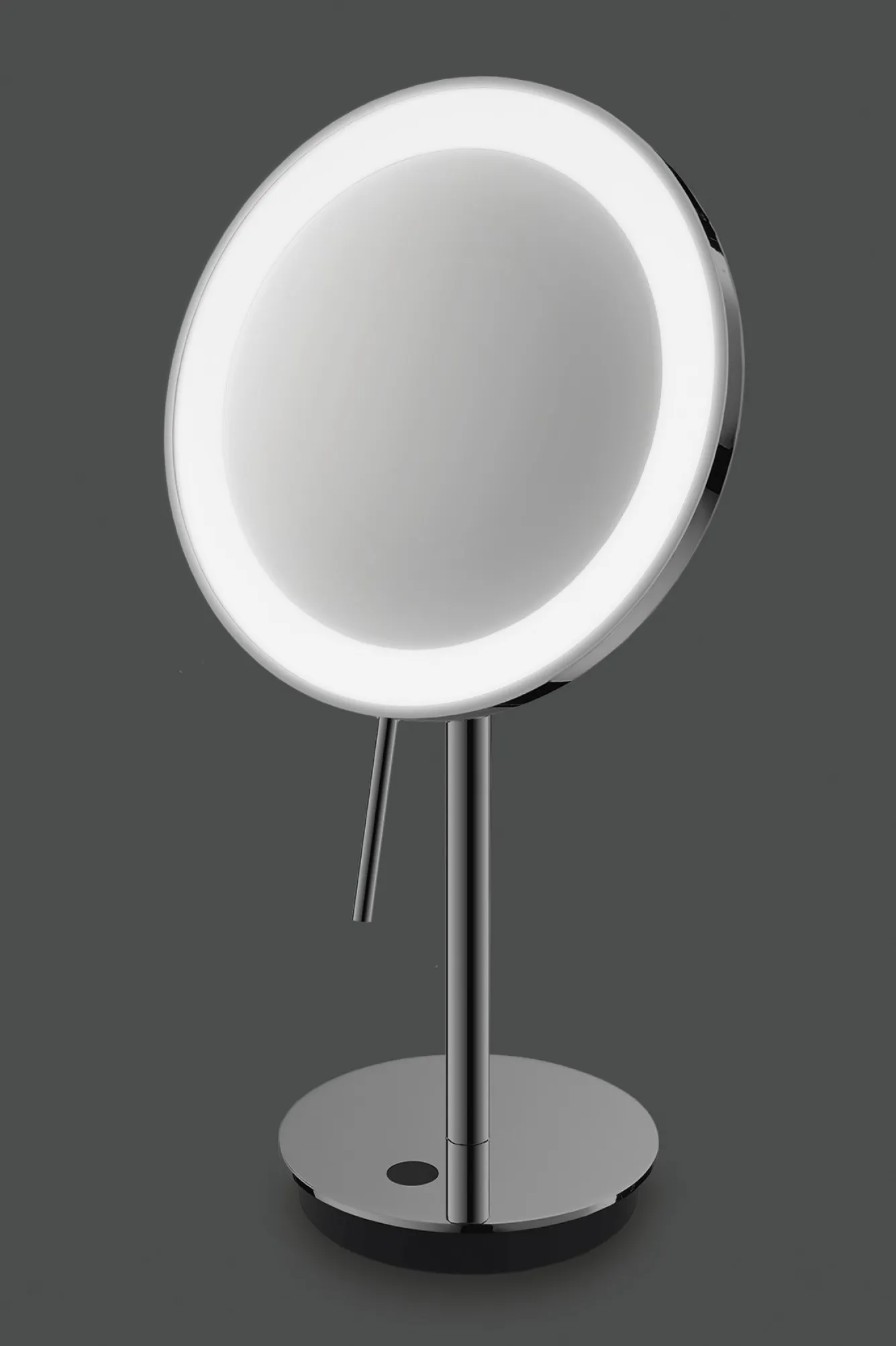 The Zack ALONA LED cosmetic mirror is ideal for applying make-up, shaving, inserting contact lenses or hairstyling. The tilting mirror with five times magnification is equipped with optimal LED lighting and a sensor-controlled on/off switch.Product informationMirror standingArticle no. 40141Material informationPolished stainless steel (gloss)DimensionsMirror diameter: 20 cmBase diameter: 13.3 cmHeight: 37 cmSpecifications * Magnification 5:1* Tilting mirror* Luminous intensity 200 LM / color temperature: 6500 – 7000 K* Sensor controlled on/off switch* The mirror works on batteries (3x AA). These are not included.* A plastic pad on the bottom prevents scratches in delicate surfaces.CleaningWe recommend that you only use water with a little washing-up liquid to clean the ZACK articles.