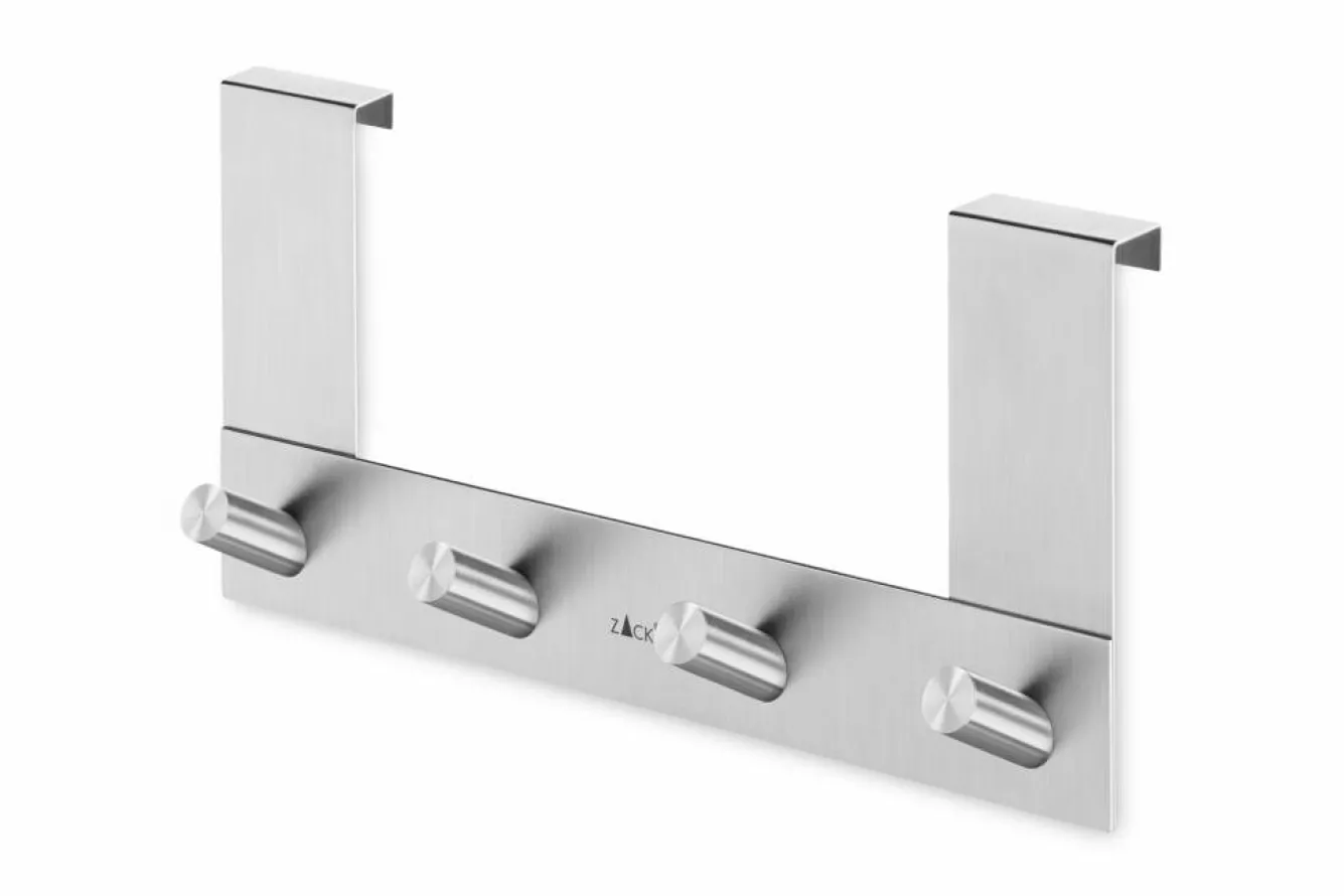 The Zack EXIT door hook is easy to install without drilling or sticking. Simply hang the hook over the door edge. Ready!Product information door hookItem number: 20753DimensionsWidth: 27 cmHeight: 13.5 cmMaterial informationBrushed stainless steel (mat)CleaningWe recommend that you only use water with a little washing-up liquid to clean the ZACK articles.* This door hook is suitable for rebate doors with a thickness of 16-19 mm.* The door hook is fully equipped with a soft foam on the back to avoid scratches in the door surface.