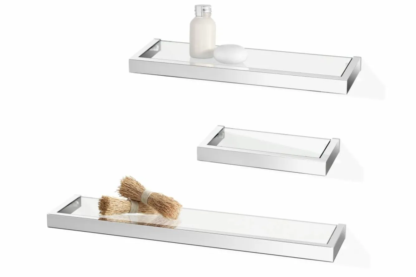 The LINEA series has been part of Zack’s basic collection for years. This sleek, timeless series consists of several items for both bathroom and toilet and is available in several versions.Product information shelfArticle no. 40028DimensionsWidth: 26.5 cmDepth: 13 cmFixing points: 2Material information- Polished stainless steel (mirror shine)- Clear glassConfirmationScrews (included)Gluing (also order glue item no. 30003 and wall brackets 40041)CleaningWe recommend that you only use water with a little washing-up liquid to clean the ZACK articles.